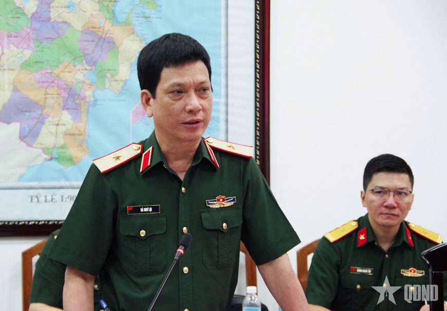 Thiếu tướng Hà Như Lợi, Phó chủ nhiệm Tổng cục Hậu cần - Kỹ thuật phát biểu tại buổi làm việc. |