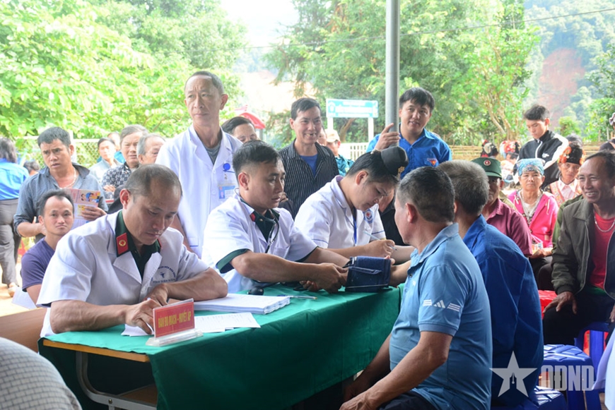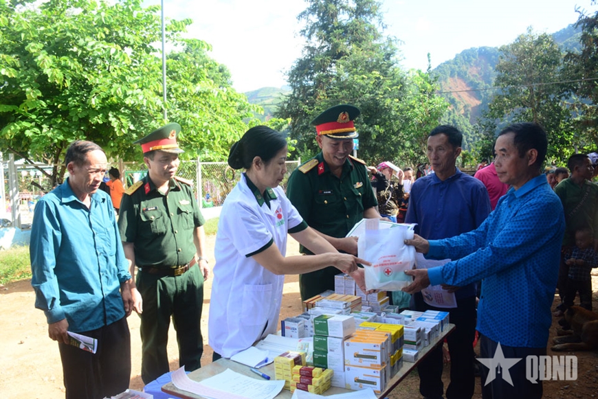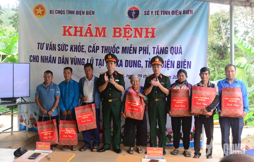 Theo đó, tại địa bàn xã Xa Dung, lực lượng quân y của đơn vị đã phối hợp với các cán bộ, y, bác sĩ cơ sở tiến hành khám bệnh, tư vấn sức khỏe, cấp thuốc miễn phí và trao 100 suất quà tặng người dân bị thiệt hại do mưa lũ, hộ nghèo, gia đình chính sách, người cao tuổi có hoàn cảnh khó khăn.