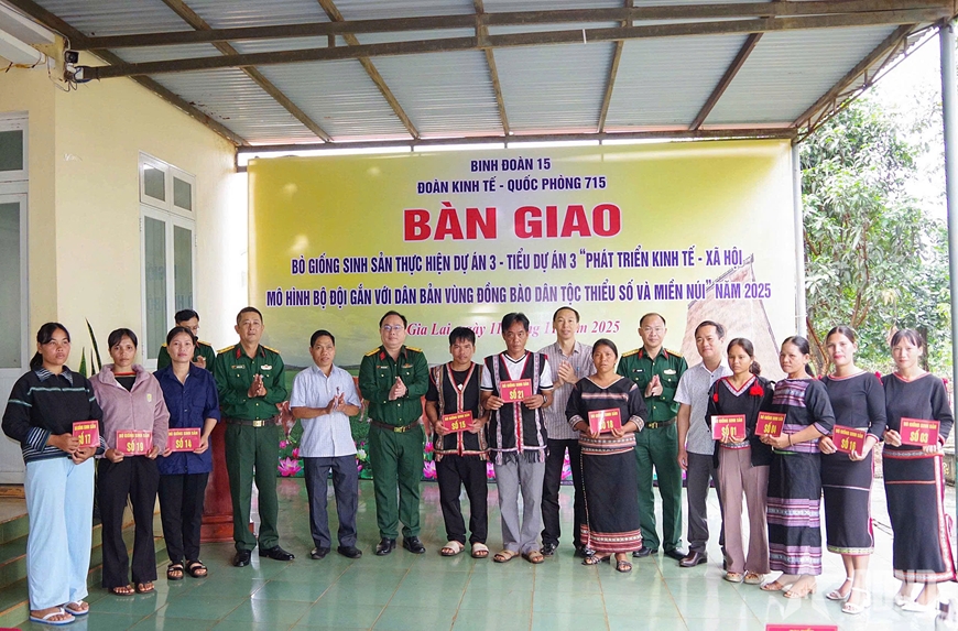 Đến dự trao bò giống cho người dân có Đại tá Thái Bá Mão, Phó chủ nhiệm Chính trị Binh đoàn 15; lãnh đạo, chỉ huy Đoàn KT-QP 715; đại diện cấp ủy, chính quyền địa phương và đông đảo bà con nhân dân trên địa bàn.