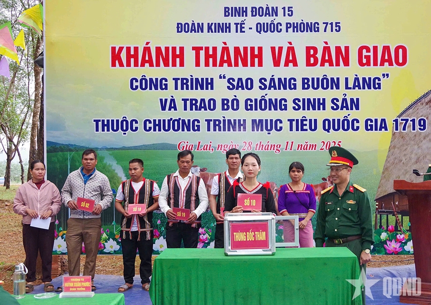 Trong ngày, Đoàn KT-QP 715 đã bàn giao bò giống sinh sản thuộc Tiểu dự án 3 - Dự án 3 của Chương trình mục tiêu quốc gia phát triển kinh tế - xã hội vùng đồng bào dân tộc thiểu số và miền núi. Tổng vốn đầu tư hơn 986 triệu đồng, hỗ trợ cho 42 hộ dân tại các xã Ia O, Ia Chía và Ia Krái. Mỗi hộ được nhận một con bò giống sinh sản bản địa. Trước khi bàn giao, các hộ dân đã được tập huấn, hướng dẫn kỹ thuật chăm sóc, phòng bệnh, xây dựng chuồng trại.