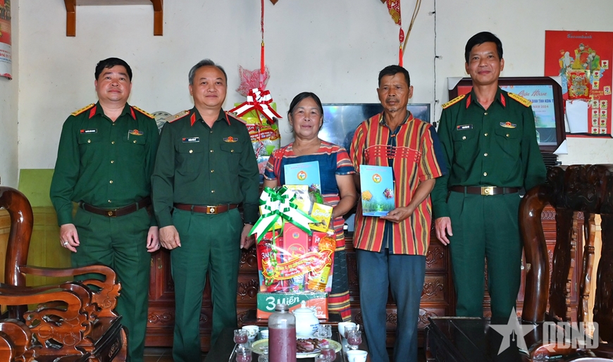 | Thiếu tướng Hoàng Văn Sỹ và lãnh đạo Đoàn Kinh tế - Quốc phòng 732 thăm, chúc Tết, tặng quà người có uy tín. |
