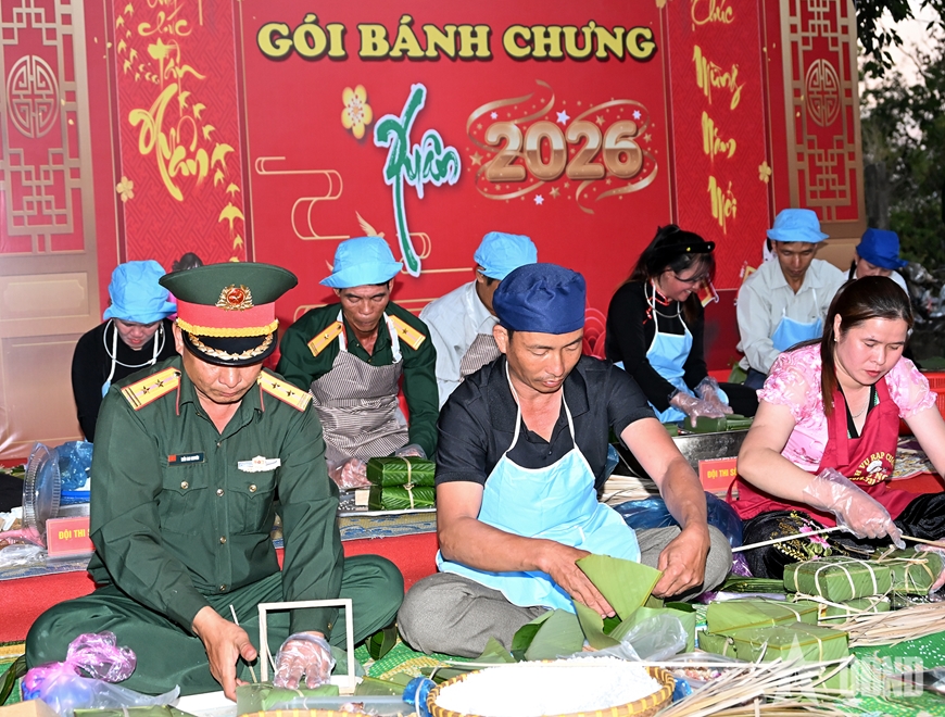 Đặc biệt, chương trình có Hội thi gói bánh chưng và trao tặng bánh chưng cho người lao động, hộ dân có hoàn cảnh khó khăn. Mỗi chiếc bánh chứa đựng tình cảm, sự quan tâm, sẻ chia sâu sắc của Đoàn Kinh tế - Quốc phòng 732 đối với người lao động và đồng bào các dân tộc trên địa bàn.