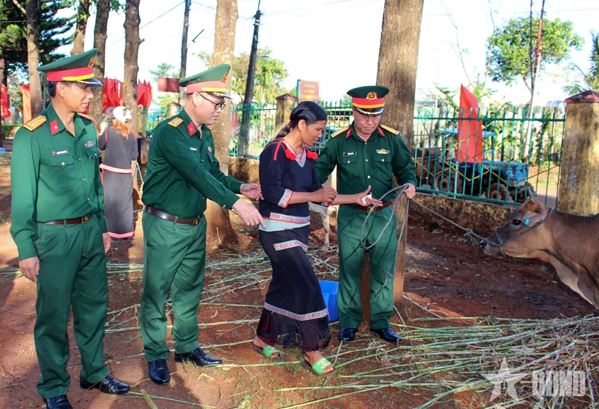 Dự và trao bò giống tới người dân có Đại tá Trần Ngọc Hải, Phó tư lệnh, Tham mưu trưởng Binh đoàn 15; lãnh đạo Đoàn Kinh tế - Quốc phòng 74.