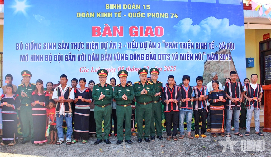 Trước đó, Đoàn Kinh tế - Quốc phòng 74 đã bàn giao bò giống đợt 1 năm 2025 hỗ trợ 25 hộ nghèo, cận nghèo, hộ đồng bào dân tộc thiểu số ở hai xã Ia Chia, Ia Dơk.