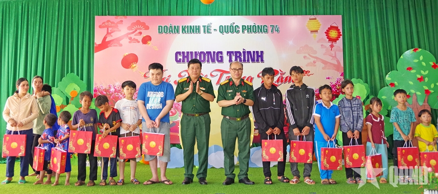 Tham dự chương trình “Vui hội trăng rằm”, các cháu sẽ được hòa mình vào các trò chơi dân gian, múa lân, hoạt động văn nghệ với các hoạt cảnh vui nhộn. Đặc biệt, Đoàn Kinh tế - Quốc phòng 74 trao 4.036 suất quà, tổng trị giá hơn 135 triệu đồng tặng các cháu.