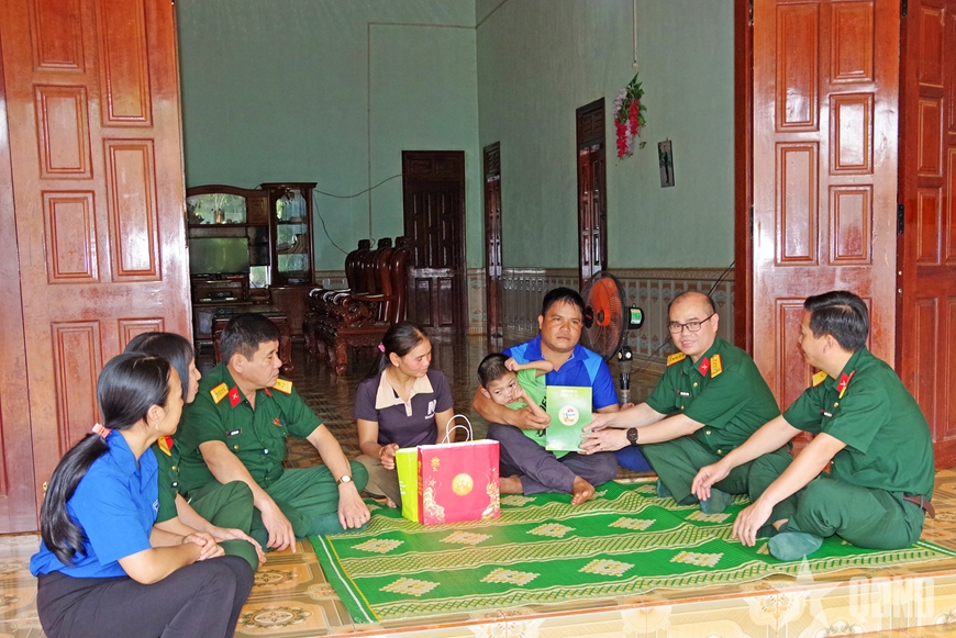 Lãnh đạo Đoàn Kinh tế - Quốc phòng 74 đến nhà thăm và tặng quà cho trẻ em bị khuyết tật bẩm sinh. |