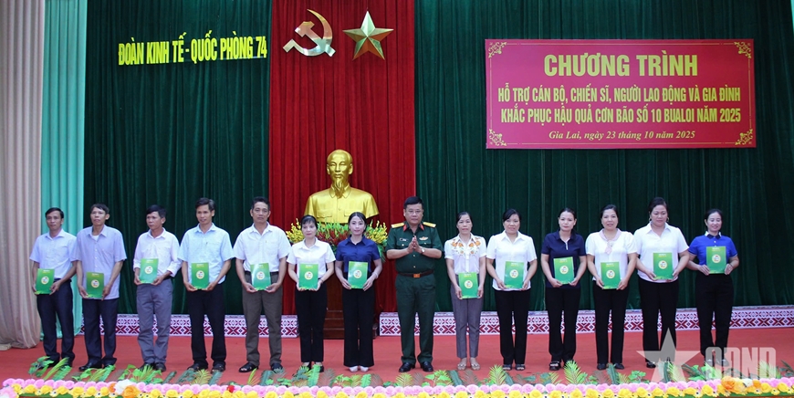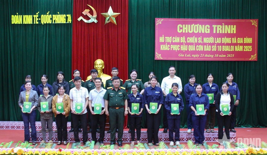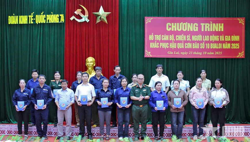 Đặc biệt, được sự chỉ đạo, hỗ trợ của Thường vụ Đảng ủy, Bộ tư lệnh Binh đoàn 15, Đoàn Kinh tế - Quốc phòng 74 tổ chức gặp mặt, trao tiền hỗ trợ cho 88 cán bộ, chiến sĩ, người lao động và gia đình khắc phục hậu quả do bão số 10 gây ra, với tổng số tiền hơn 163 triệu đồng.