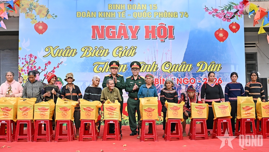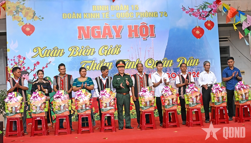Tại chương trình “Xuân biên giới thắm tình quân dân”, Đại tá Trần Ngọc Hải, Phó tư lệnh, Tham mưu trưởng Binh đoàn 15 và lãnh đạo Đoàn Kinh tế - Quốc phòng 74 trao hơn 200 suất quà, tổng trị giá hơn 160 triệu đồng tặng các gia đình chính sách, già làng, trưởng thôn, bí thư chi bộ, hộ nghèo, người neo đơn; các cặp “Gắn kết hộ” tiêu biểu và công nhân, người lao động của đơn vị.