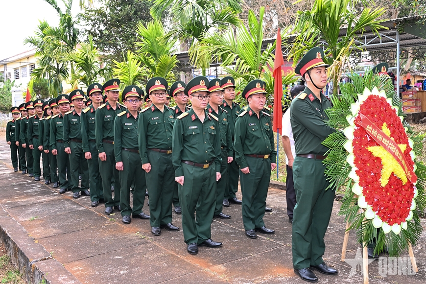 | Lãnh đạo Binh đoàn 15 và cán bộ, nhân viên Đoàn Kinh tế - Quốc phòng 74 dâng hoa, dâng hương tại Đài tưởng niệm các Anh hùng liệt sĩ xã Ia Dơk. |