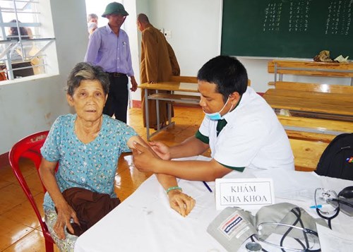 Các y bác sĩ Đoàn KT-QP 778 khám bệnh, cấp thuốc miễn phí cho gia đình chính sách, đồng bào S’tiêng nghèo tại xã Đắk Ơ, huyện Bù Gia Mập, tỉnh Bình Phước.