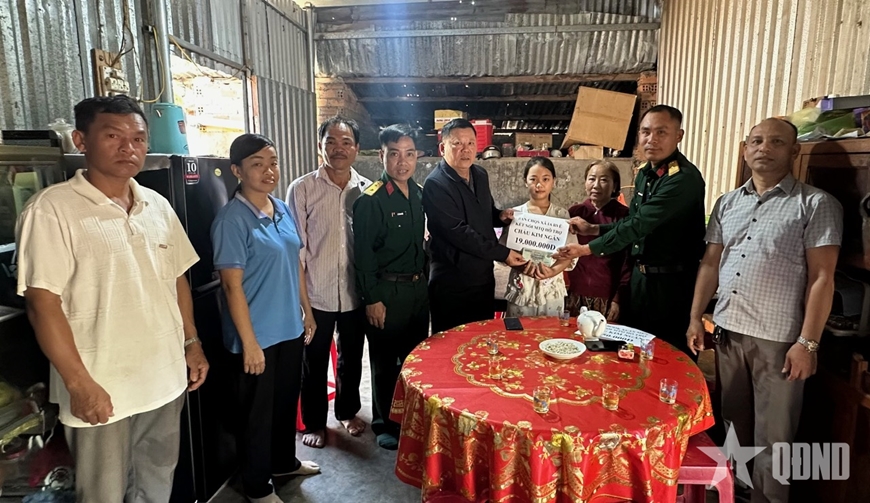 Tiếp nhận thông tin từ đồng chí Chủ tịch UBND xã, Ban CHQS xã đã kết nối kêu gọi qua mạng xã hội. Tại buổi gặp mặt, đoàn đã trao tận tay gia đình số tiền 19 triệu đồng. Nhìn đôi bàn tay run rẩy của bà Bo khi đón nhận số tiền hỗ trợ, chúng tôi hiểu rằng đây không chỉ là giá trị vật chất, mà là cơ hội sống, là hy vọng hồi sinh cho cháu Ngân. "Số tiền này đối với gia đình tôi là một gia tài lớn. Trong lúc tuyệt vọng nhất, các chú Bộ đội và chính quyền đã nắm lấy tay gia đình, cho cháu tôi cơ hội được tiếp tục đến trường", bà Lê Thị Bo nghẹn ngào chia sẻ.
