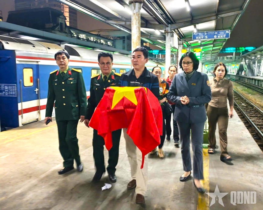 | Hội Hỗ trợ gia đình liệt sĩ Việt Nam tổ chức đón hài cốt liệt sĩ được vận chuyển bằng tàu hỏa về an táng tại quê nhà. |