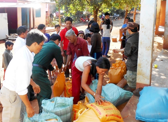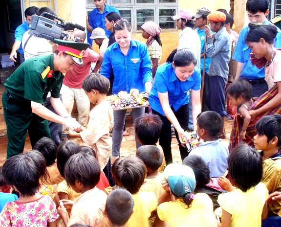 Cán bộ Công ty 75 tặng quà đồng bào dân tộc thiểu số. |