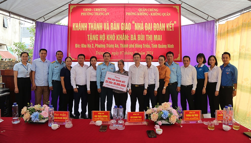 Có mặt chia vui, chúc mừng gia đình bà Mai, Thượng tá Nguyễn Ngọc Nam, Phó trưởng phòng Dân vận nhấn mạnh: “Số tiền hỗ trợ xây dựng nhà đại đoàn kết tặng gia đình bà Mai tuy không nhiều nhưng thể hiện trách nhiệm, tình cảm của cán bộ, chiến sĩ Quân chủng PK-KQ, nhằm thực hiện có hiệu quả Phong trào thi đua “Cả nước chung tay vì người nghèo-Không để ai bị bỏ lại phía sau”; kịp thời chia sẻ, động viên những gia đình có hoàn cảnh khó khăn vươn lên ổn định cuộc sống, góp phần xây dựng mối quan hệ đoàn kết quân dân, xây dựng cơ sở chính trị địa phương ngày càng vững mạnh”.