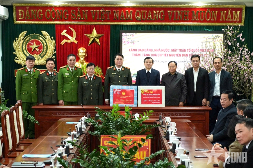 Cùng ngày, đoàn công tác đã tới thăm, chúc Tết Bộ CHQS và Công an tỉnh Lai Châu; nghe các đơn vị báo cáo công tác trực Tết, bảo đảm quốc phòng - an ninh, trật tự an toàn xã hội để nhân dân yên tâm vui xuân, đón Tết.