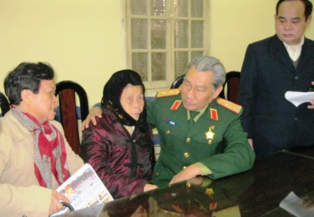 Trung tướng Lê Văn Hân thăm hỏi mẹ liệt sĩ tới nhận kết quả giám định ADN.