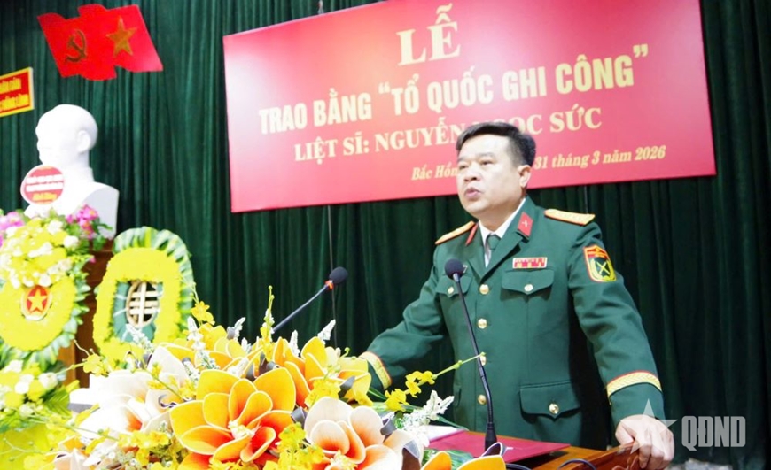 Ngày 31-3, cấp ủy, chính quyền, Ủy ban MTTQ và lực lượng vũ trang phường Bắc Hồng Lĩnh (tỉnh Hà Tĩnh) tổ chức Lễ trao Bằng “Tổ quốc ghi công” đối với liệt sĩ Nguyễn Ngọc Sức.