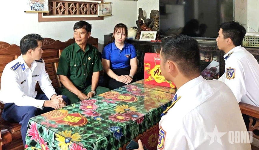 Ngày 17-1, tại xã Núi Thành (TP Đà Nẵng), Liên chi đoàn Hải đội 211 (Đoàn cơ sở Hải đoàn 21, Vùng Cảnh sát biển 2) phối hợp cùng Chi đoàn thôn Sâm Linh Tây tổ chức thăm hỏi, tặng quà gia đình cựu chiến binh Phạm Ngọc Phong.