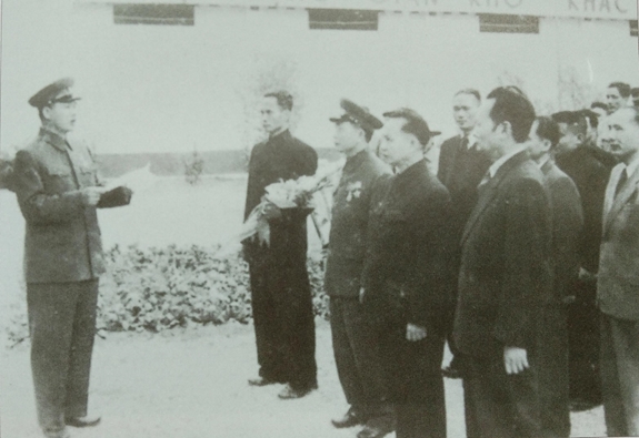 Đồng chí Lê Liêm, Phó chủ nhiệm Tổng cục Chính trị khai mạc triển lãm “Hình ảnh chiến đấu và trưởng thành của Quân đội nhân dân Việt Nam”, năm 1955. Ảnh tư liệu |