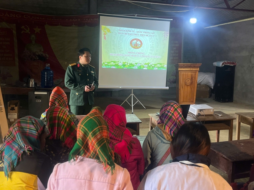 Song song với hỗ trợ phát triển kinh tế, Đoàn KTQP 345 phối hợp cấp ủy, chính quyền địa phương đẩy mạnh tuyên truyền, phổ biến, giáo dục pháp luật cho nhân dân theo Đề án 1371 của Quân ủy Trung ương và Đề án 57 của Chính phủ. Nội dung tuyên truyền tập trung vào Luật Biên phòng Việt Nam; các quy định về quản lý, bảo vệ biên giới quốc gia; phòng, chống tội phạm, tệ nạn xã hội; nâng cao cảnh giác trước những thủ đoạn lợi dụng vấn đề dân tộc, tôn giáo, không gian mạng nhằm chia rẽ khối đại đoàn kết toàn dân tộc. Cách làm linh hoạt, dễ hiểu, gắn với tình huống cụ thể ở địa bàn giúp bà con tiếp thu hiệu quả, tự giác chấp hành pháp luật.