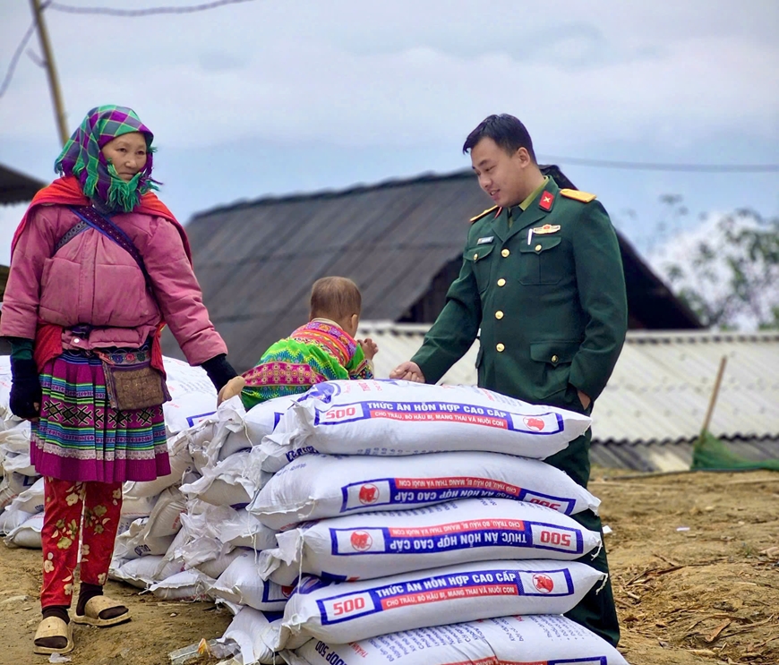 Cùng với cấp giống, vật tư chăn nuôi, cán bộ chuyên môn của Đoàn KTQP 345 còn trực tiếp hướng dẫn bà con kỹ thuật chăm sóc, chăn nuôi bò phù hợp với điều kiện thời tiết khắc nghiệt nơi biên giới. Nội dung tập trung vào che chắn chuồng trại kín gió, giữ ấm cho đàn bò trong mùa đông giá rét; dự trữ thức ăn tinh và thức ăn thô xanh; bổ sung khoáng chất, bảo đảm nước uống sạch; chủ động phòng, chống rét và dịch bệnh. Những hướng dẫn sát thực tiễn giúp nâng cao tỷ lệ sống, khả năng sinh trưởng của đàn bò, giảm rủi ro trong giai đoạn đầu nuôi dưỡng.