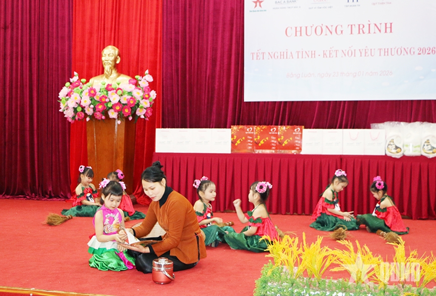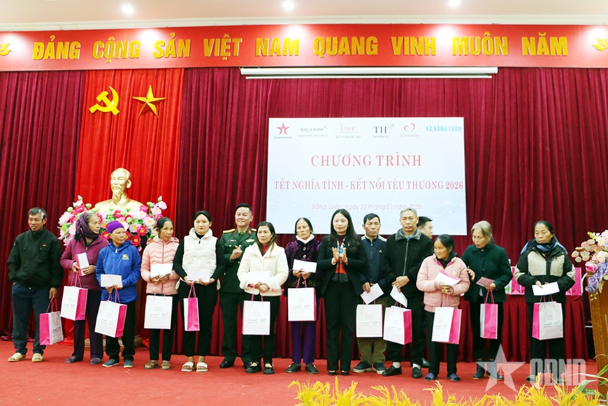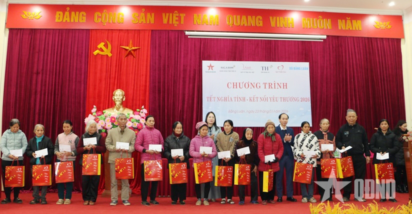 Hơi ấm tỏa ra từ tình người, từ sự sẻ chia của chương trình “Tết nghĩa tình-Kết nối yêu thương 2026” do Báo Quân đội nhân dân phối hợp với xã Bằng Luân, tỉnh Phú Thọ và các đơn vị đồng hành Ngân hàng TMCP Bắc Á, Quỹ Vì tầm vóc Việt - Tập đoàn TH, Quỹ Thiện tâm - Tập đoàn Vingroup; một số doanh nghiệp địa phương tổ chức.