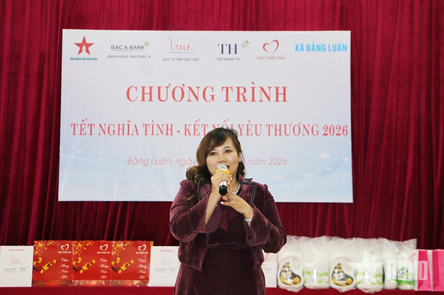 Theo bà Vũ Thu Hằng, Giám đốc Truyền thông Ngân hàng TMCP Bắc Á, đại diện Quỹ Vì tầm vóc Việt-Tập đoàn TH, nhờ sự kết nối của Báo Quân đội nhân dân, các đơn vị đồng hành, trong đó có Ngân hàng TMCP Bắc Á, Quỹ Vì tầm vóc Việt - Tập đoàn TH mới có cơ hội để về với bà con xã Bằng Luân.