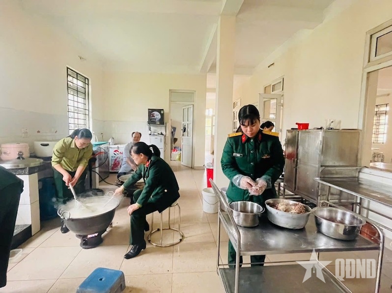 Mỗi suất cháo là một lời hỏi thăm ân cần, một ánh nhìn sẻ chia, thể hiện trách nhiệm, tấm lòng và phẩm chất tốt đẹp của người phụ nữ Quân đội trong thời bình.