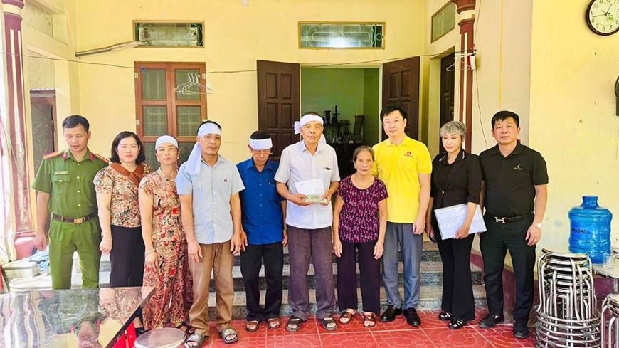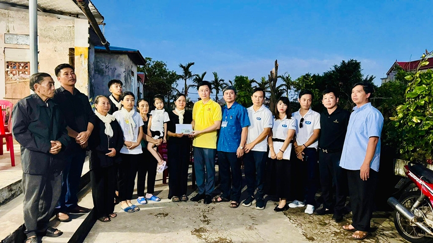 Đại diện Quỹ Thiện Tâm thăm hỏi, động viên các gia đình chịu thiệt hại sau bão Bualoi ở tỉnh Ninh Bình. |