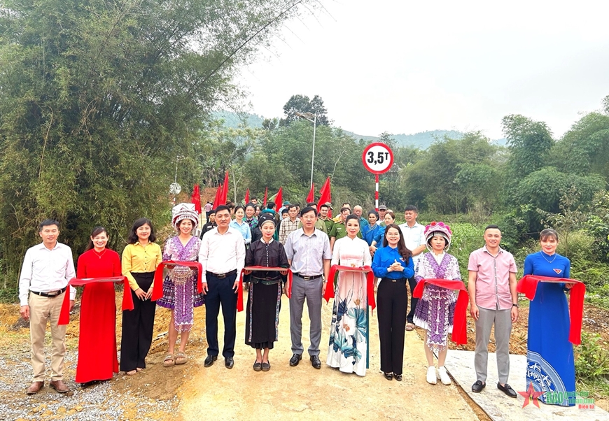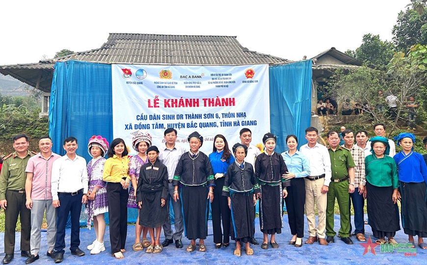 Các đại biểu cắt băng khánh thành cầu DR Thành Sơn 6 tại thôn Nhạ, xã Đồng Tâm (Bắc Quang, Hà Giang). |