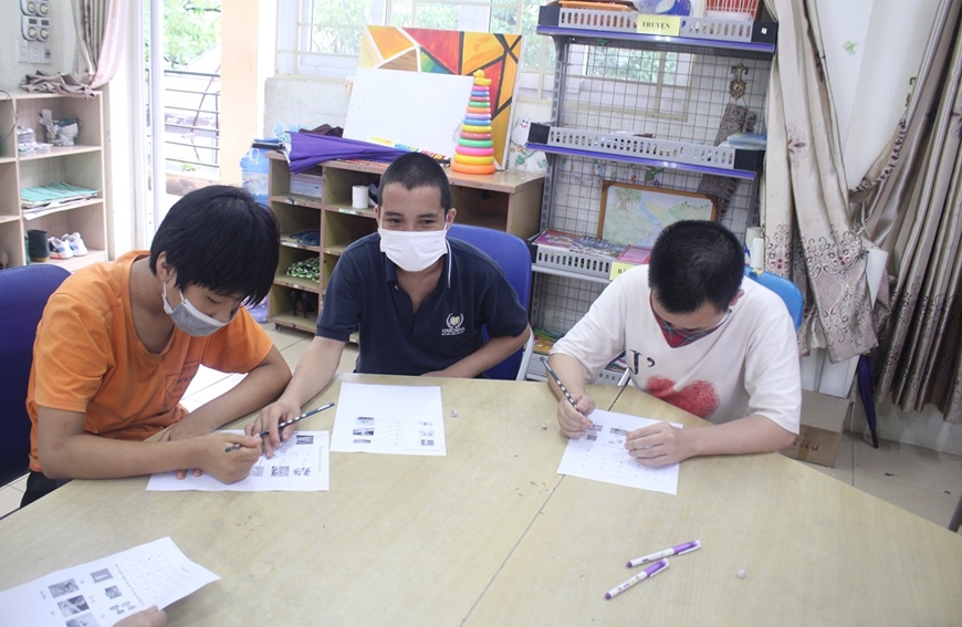 | Giờ học vẽ của các em lớp Giáo dục đặc biệt. |