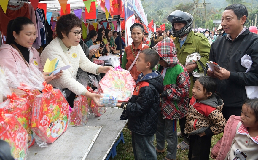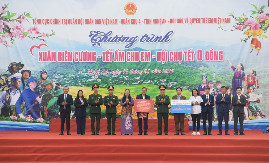 Trong đó, Chương trình “Xuân biên cương-Tết ấm cho em-Hội chợ Tết 0 đồng” tại xã Tam Thái, tỉnh Nghệ An được xác định là một trọng điểm. Chương trình diễn ra trong 2 ngày (30 và 31-1), nhằm hỗ trợ nhân dân địa phương vùng sâu, vùng xa, khu vực chịu ảnh hưởng nặng nề bởi thiên tai, lũ lụt năm 2025. Điểm mới nổi bật của chương trình năm nay là việc tổ chức sớm, chủ động hơn; hình thức phong phú, linh hoạt; nguồn lực huy động lớn hơn, quà tặng đa dạng, thiết thực, sát nhu cầu đời sống của nhân dân, đặc biệt thông qua mô hình “Hội chợ Tết 0 đồng”.