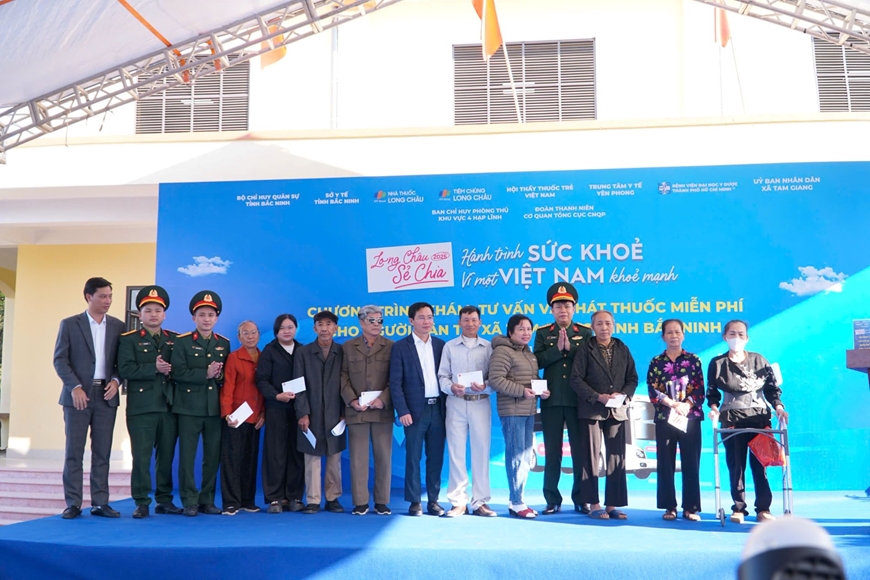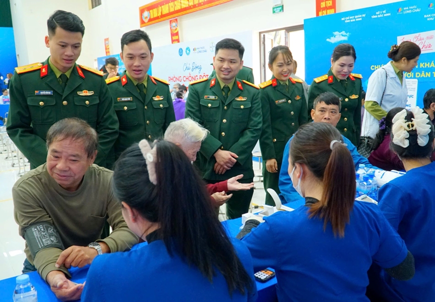 Trong chương trình, Quân y cơ quan Tổng cục Công nghiệp Quốc phòng cùng các y, bác sĩ, dược sĩ, tình nguyện viên của các cơ quan đã tổ chức khám bệnh, tầm soát sức khỏe tổng quát, đo huyết áp, kiểm tra loãng xương, chức năng thận mạn, siêu âm, chụp X-quang; tư vấn khám sức khỏe, cấp, phát thuốc miễn phí cho hơn 500 người dân xã Tam Giang, tỉnh Bắc Ninh, nơi vừa chịu nhiều thiệt hại từ cơn bão số 11. Đồng thời, lực lượng đoàn viên thanh niên cơ quan Tổng cục Công nghiệp Quốc phòng đã hỗ trợ bà con cập nhật thông tin vào sổ khám sức khỏe điện tử.