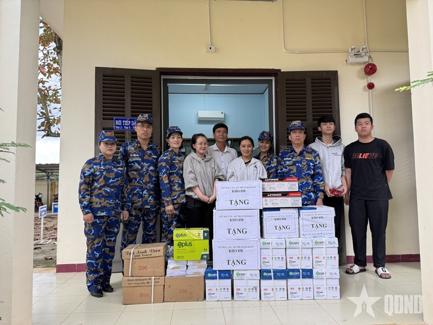 Kho 858 đã trao hỗ trợ 3 máy in Canon, đồ dùng học tập và một số vật tư cần thiết phục vụ công tác vệ sinh môi trường sau mưa lũ, góp phần giúp thầy cô và học sinh sớm ổn định điều kiện dạy, học, vượt qua khó khăn trước mắt.