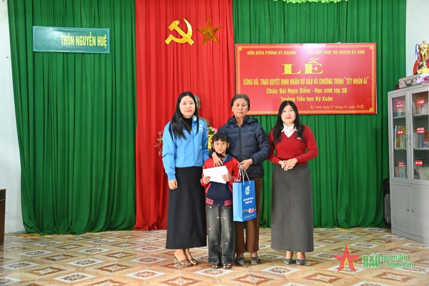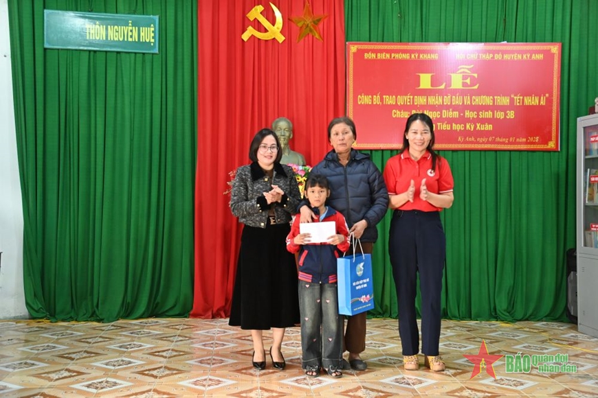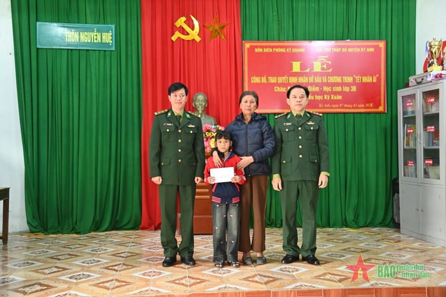 Nhân dịp đầu Xuân năm mới, lãnh đạo Bộ đội Biên phòng tỉnh, Ủy ban Mặt trận Tổ quốc Việt Nam huyện, Hội Liên hiệp Phụ nữ, Hội Chữ thập đỏ huyện Kỳ Anh và Đồn Biên phòng Kỳ Khang cũng đã trao nhiều phần quà hỗ trợ cháu.