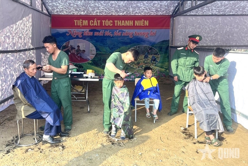 | Cắt tóc miễn phí cho người dân và trẻ em. |