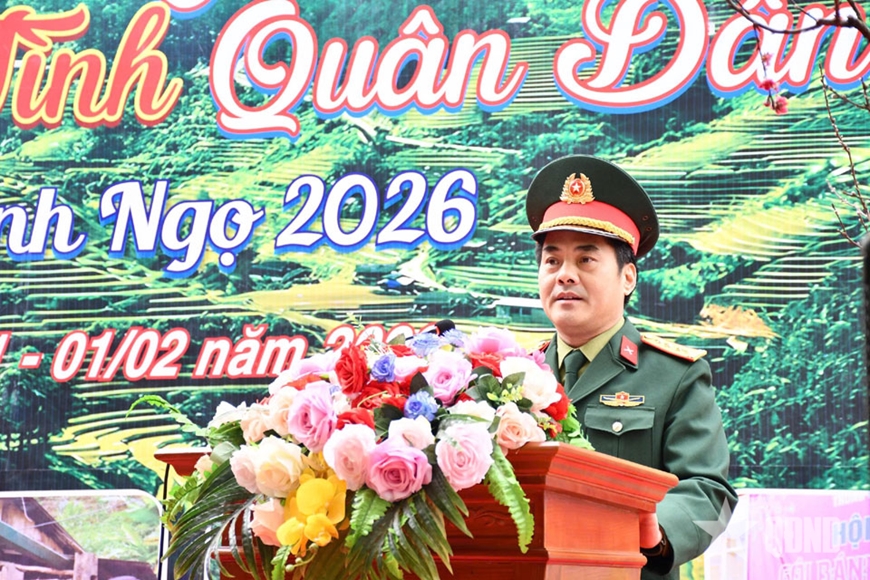Phát biểu khai mạc, Đại tá Triệu Kim Thắng, Chính ủy Bộ CHQS tỉnh Lai Châu khẳng định, thế trận lòng dân là “lá chắn” vững chắc trong sự nghiệp xây dựng và bảo vệ Tổ quốc. Những năm qua, Bộ CHQS tỉnh Lai Châu luôn phối hợp và tổ chức tốt các hoạt động đền ơn đáp nghĩa, giúp đỡ đồng bào vùng sâu, vùng xa, vùng biên giới còn gặp khó khăn trong cuộc sống. Đặc biệt, chương trình “Xuân biên cương đoàn kết - Tết thắm tình quân dân” đã trở thành hoạt động thường niên, mang ý nghĩa nhân văn sâu sắc, trực tiếp giúp đỡ đồng bào còn khó khăn mỗi khi Tết đến, xuân về. Hoạt động này thể hiện nét đẹp văn hóa truyền thống, tri ân nhân dân, chung sức xây dựng nông thôn mới, ổn định đời sống, và bảo vệ an ninh biên giới.