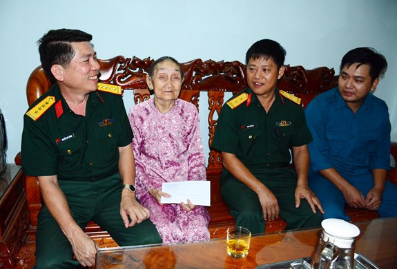 Đại diện Bộ CHQS tỉnh Đồng Nai thăm, tặng quà Bà mẹ Việt Nam anh hùng Đỗ Thị Mận. |
