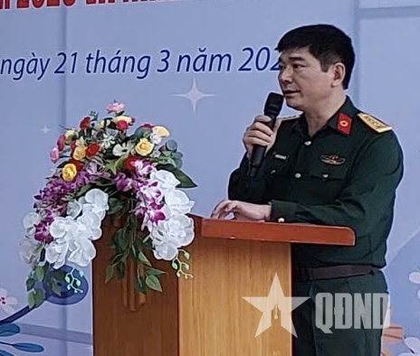 | Đại tá, PGS, TS Nguyễn Thành Bắc, Phó giám đốc Bệnh viện Quân y 103 chia sẻ tại buổi khám bệnh, cấp thuốc miễn phí. |