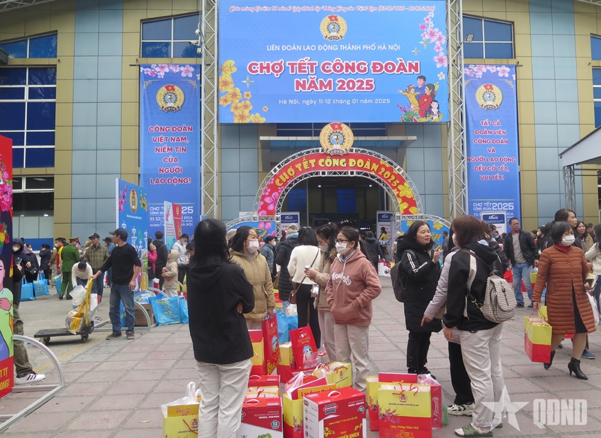 | Chợ Tết công đoàn 2025 do Liên đoàn Lao động thành phố Hà Nội tổ chức. Ảnh: qdnd.vn |