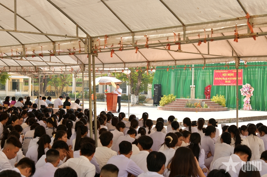 Cùng với đó, đoàn công tác cung cấp những thông tin cơ bản về công tác tuyển sinh quân sự vào Học viện Hải quân năm 2026, giúp học sinh định hướng nghề nghiệp, tạo sức hút, thu hút nguồn nhân lực chất lượng cao cho Quân chủng Hải quân.