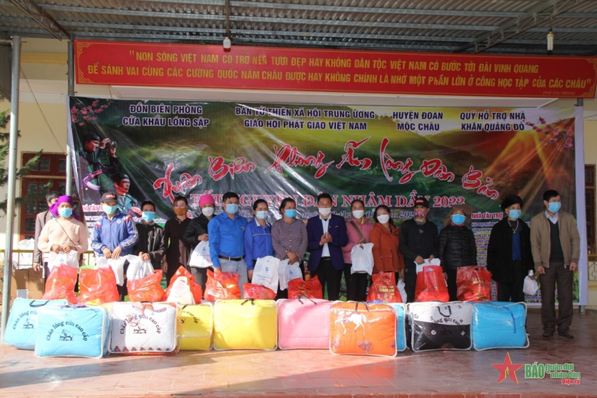 Thay mặt các đơn vị tài trợ, Hòa thượng Thích Quảng Tùng, Phó chủ tịch Hội đồng Trị sự, Trưởng ban từ thiện xã hội Trung ương Giáo hội Phật giáo Việt Nam đã trao đại diện 627 suất quà (mỗi suất trị giá 500 nghìn đồng) tặng đồng bào. Nhận được sự quan tâm của ban tổ chức chương trình, anh Lò Văn Nghè, ở bản Khừa bày tỏ: "Năm nào gia đình tôi cũng nhận được sự quan tâm chu đáo, tình nghĩa giúp chúng tôi đón một cái tết vẹn tròn. Cảm ơn bộ đội biên phòng nhiều lắm!"