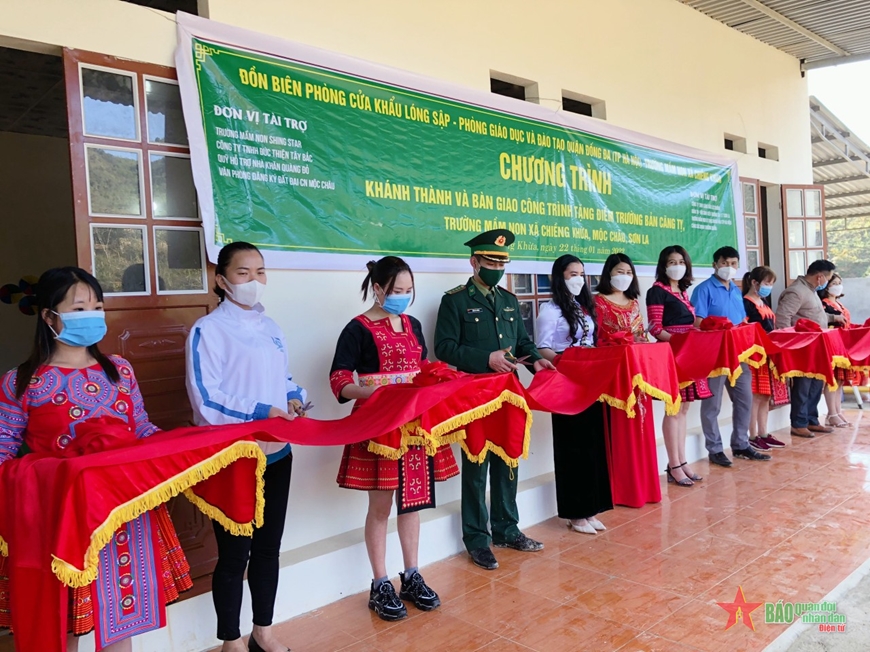Cũng trong chương trình, đơn vị đã tổ chức bàn giao, đưa vào sử dụng công trình “Lớp học biên cương” và “Bếp ăn yêu thương-nâng bước em tới trường” cùng các công trình phụ trợ khác tặng học sinh điểm Trường Căng Tỵ, Trường Mầm non xã Chiềng Khừa; khám bệnh, cấp phát thuốc cho 400 người dân; ra mắt mô hình “Ươm mầm xanh biên giới-Vững bước tới tương lai”… với tổng trị giá khoảng 650 triệu đồng.