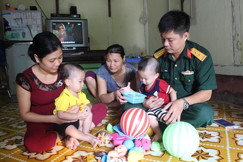 Chúng tôi đến thăm gia đình Trung úy QNCN Lê Đức Thọ vào đúng dịp Quốc khánh (2-9). Trong khi nhiều cặp vợ chồng trẻ cùng cơ quan với anh chị đang vui vẻ với những chuyến du lịch nhân dịp Tết Độc lập, thì tại căn nhà trọ chật chội ở tổ 20, phường Yên Ninh, TP Yên Bái, anh chị lại tất tưởi chuẩn bị quần áo, đồ dùng để đưa hai con nhỏ nhập viện điều trị theo định kỳ.
