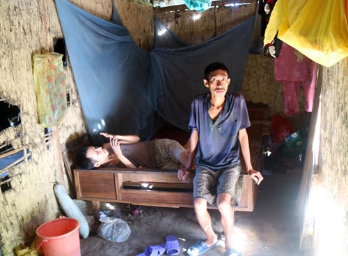 Hai anh em Trương Quang Hiếu và Trương Quang Thuần trong túp lều của ông Trương Quang Tịnh.