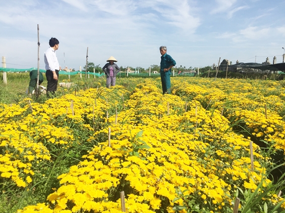 Người dân Triệu Hòa chuyển đổi mô hình trồng lúa sang trồng hoa cho thu nhập cao. |