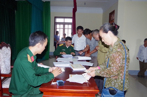 Ban CHQS huyện Nghi Lộc (Nghệ An) thực hiện chi trả chế độ cho công dân tham gia dân công hỏa tuyến trên địa bàn.