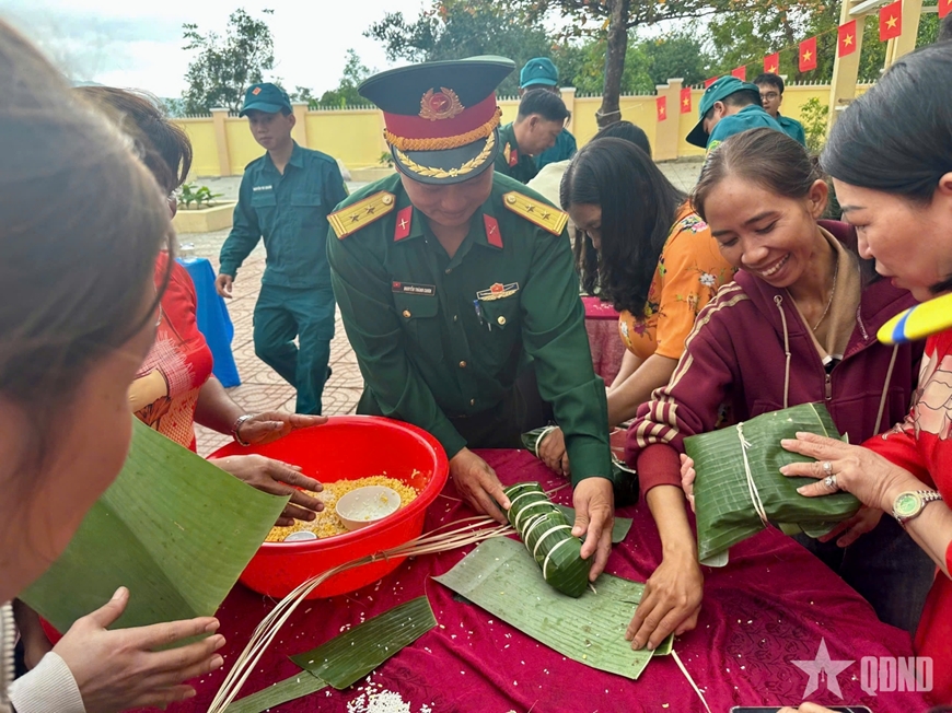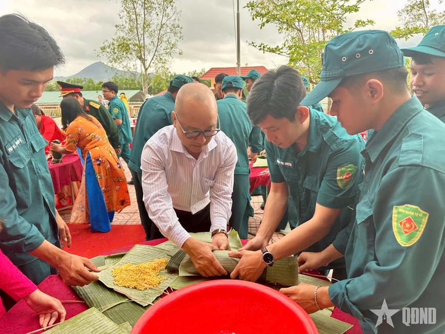 Không khí ngày hội càng thêm sôi nổi với chuỗi hoạt động văn hóa, thể thao phong phú. Các trò chơi dân gian như: Kéo co, cướp cờ, đẩy gậy, nhảy bao bố... đã thu hút sự tham gia và cổ vũ nhiệt tình của đông đảo cán bộ, chiến sĩ và người dân. Đặc biệt, hội thi gói bánh chưng, bánh tét đã tái hiện nét đẹp văn hóa truyền thống, để các thế hệ cùng nhau ôn lại ý nghĩa của Tết cổ truyền dân tộc, giáo dục lòng yêu nước cho thế hệ trẻ.