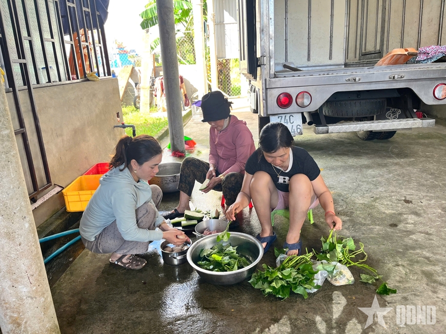 Hội viên phụ nữ thôn Phú Hội, xã Nam Cửa Việt, tỉnh Quảng Trị nấu cơm hỗ trợ thân nhân các thuyền viên mất tích.
