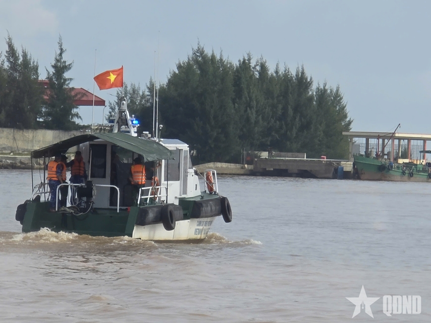Cán bộ, chiến sĩ Đồn Biên phòng Triệu Vân phối hợp cùng lực lượng Cảnh sát biển tích cực tìm kiếm các nạn nhân. |